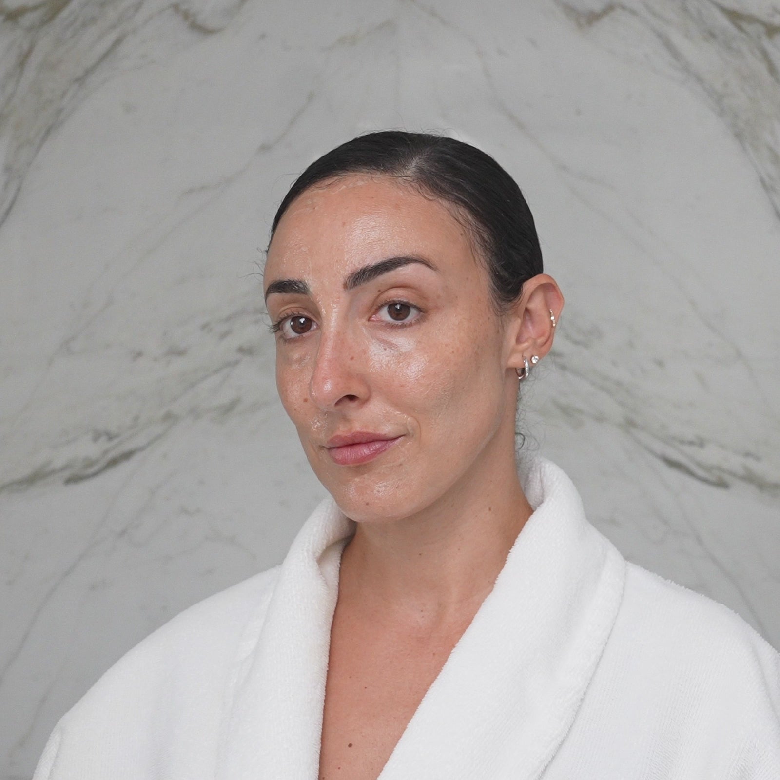 These dual-sided cleansing mitts were developed for use during in-clinic treatments to effectively sweep away cleanser, make-up and grime. One side is textured and provides gentle physical exfoliation for the face, while the other has a finely woven texture for the delicate eye area.